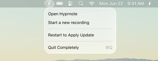 1. Quit Hyprnote completely by clicking on the tray icon and the menubar icon, then click "Quit completely"